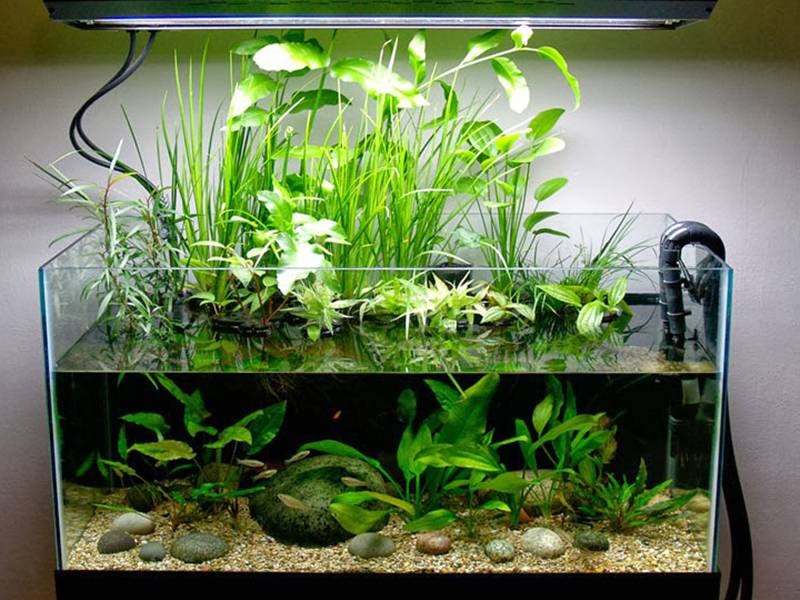 Tại đây (những vườn trồng cây trên cạn, cây thủy sinh trong nhà) người ta đã đi đến kết quả cao nhất với ánh sáng ngả qua màu vàng – đỏ của đèn chiết áp Natrium. Mặc dù vậy, loại đèn này vẫn không thích hợp được với bể thủy sinh của chúng ta, trừ trường hợp ai chấp nhận được một bể cá với màu vàng đỏ chói rực.